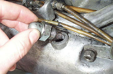 Place an oil pan directly below the cap and unscrew it in an anti-clockwise direction to remove the plug. Be careful not to lose the small sealing washer around the outer rim as this can be reused if necessary, although it's best to replace it altogether. This plug also contains a small magnet which attracts any small metal pieces that are loose in the oil. It should be cleaned when removed.