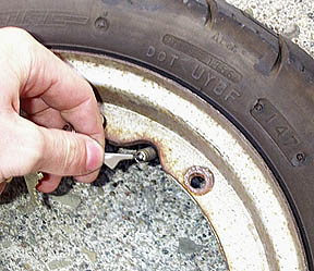 Tires - Fixing a FlatFixing a flat on a scooter is an easy project. The design of both wheels on a Vespas and the rear wheel on a Lambretta makes it very easy to remove the tire and rim to change it. On a Vespa both wheels are single sided meaning the forks or engine is on one side and the other side is free. On a Lambretta the rear tire is single sided but the front has fork connections on either side - click for a link to the Lambretta front tire change page. Also both scooters halve split rims which allows you to get access to the tube without having to get the tire off the rim like a car. Tools - You will need: