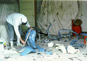 More parts can come off a Lambretta than you would ever think by looking at it. I had a total of over 30 parts to sand prime and paint. This was in my younger years and I decided I would save money and do all the prep work myself with only a sanding block - bad move. Hundreds of sheets of sandpaper and raw finger on both hands got me to the picture above...ready for priming.