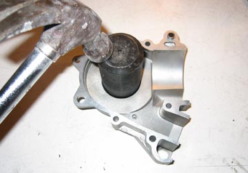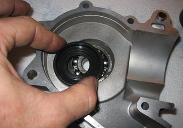 bearing. The new flywheel bearing is placed into the casing from the