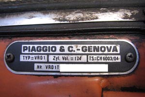| This model was made for the Swiss market only and was even given it's own chassis number. The 175cc must have been a reponse to some law, but the rest of the bike appears to be the same as the Italian Rally 180. The motor is stamped VRD1M. Thanks to Enrico Marra from Belgium for the images. | |||||||||||||
