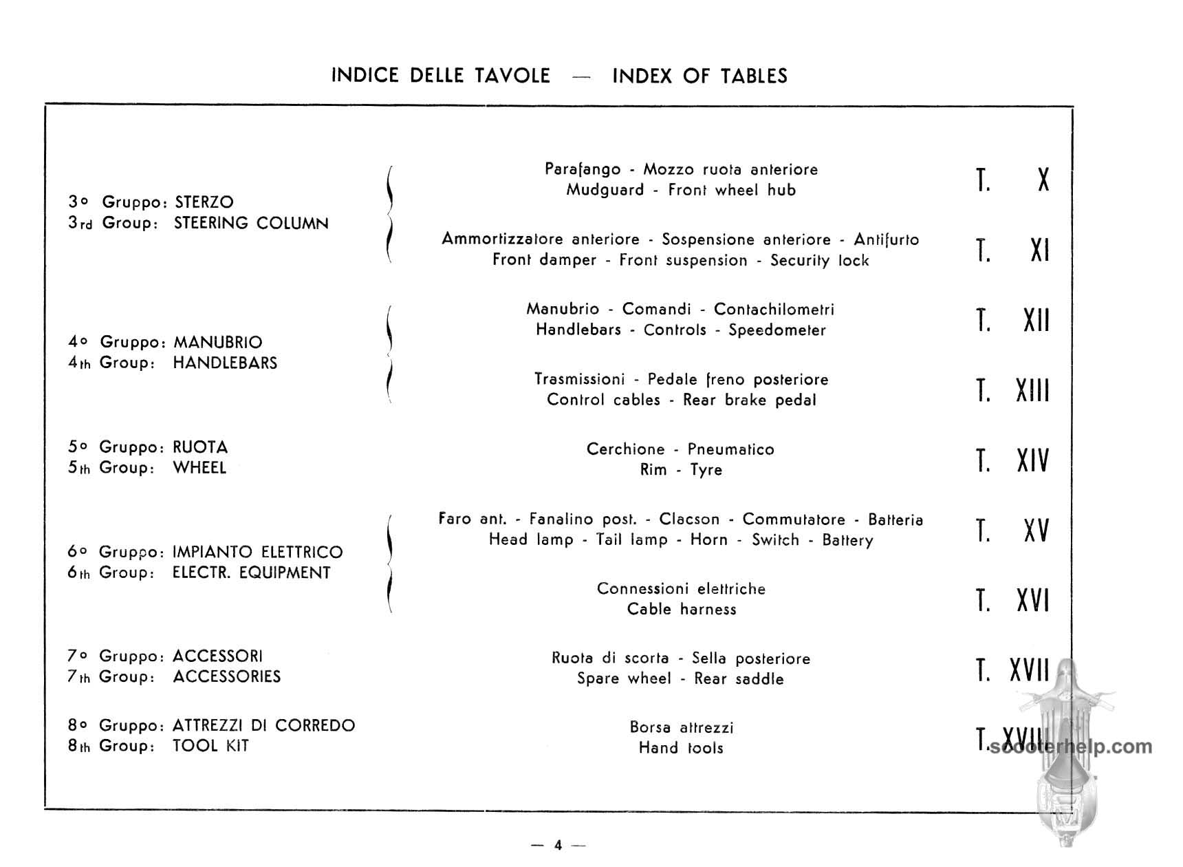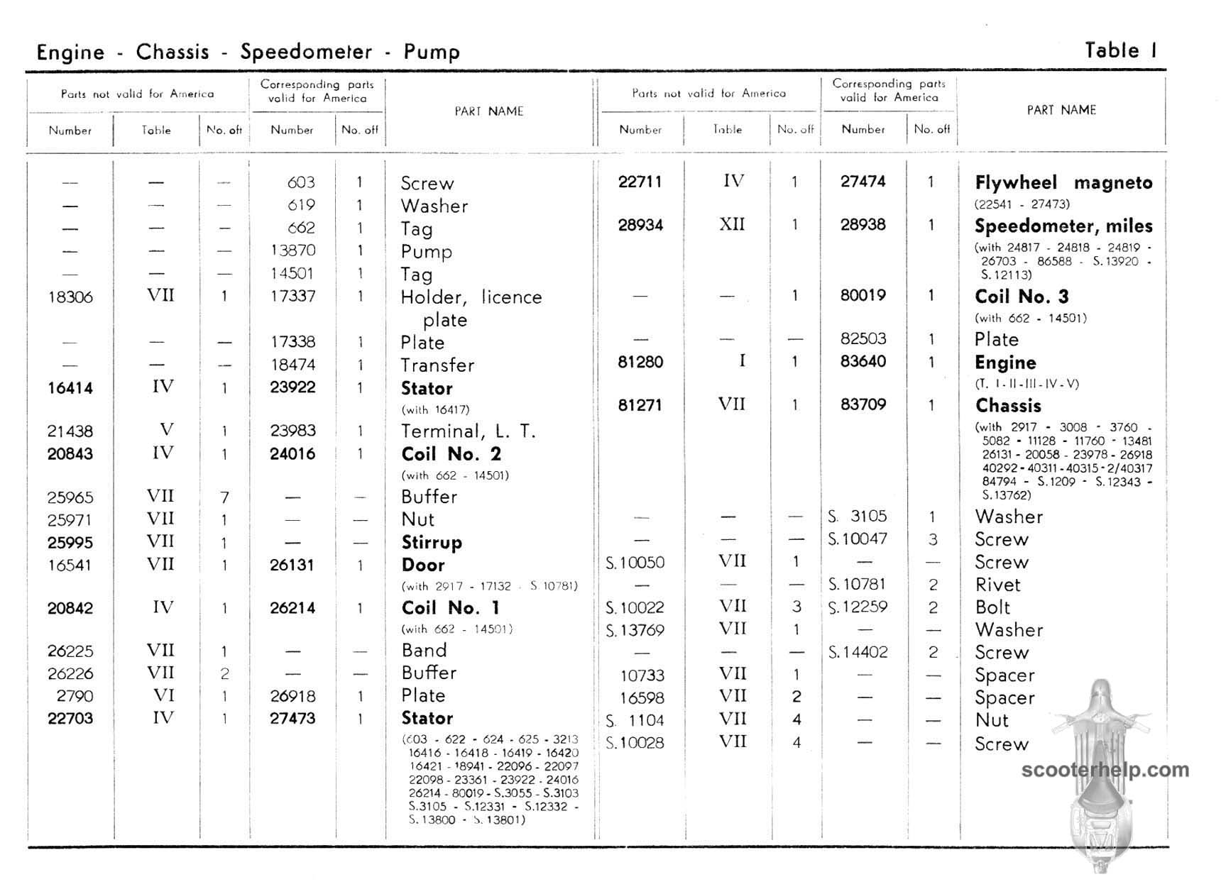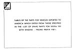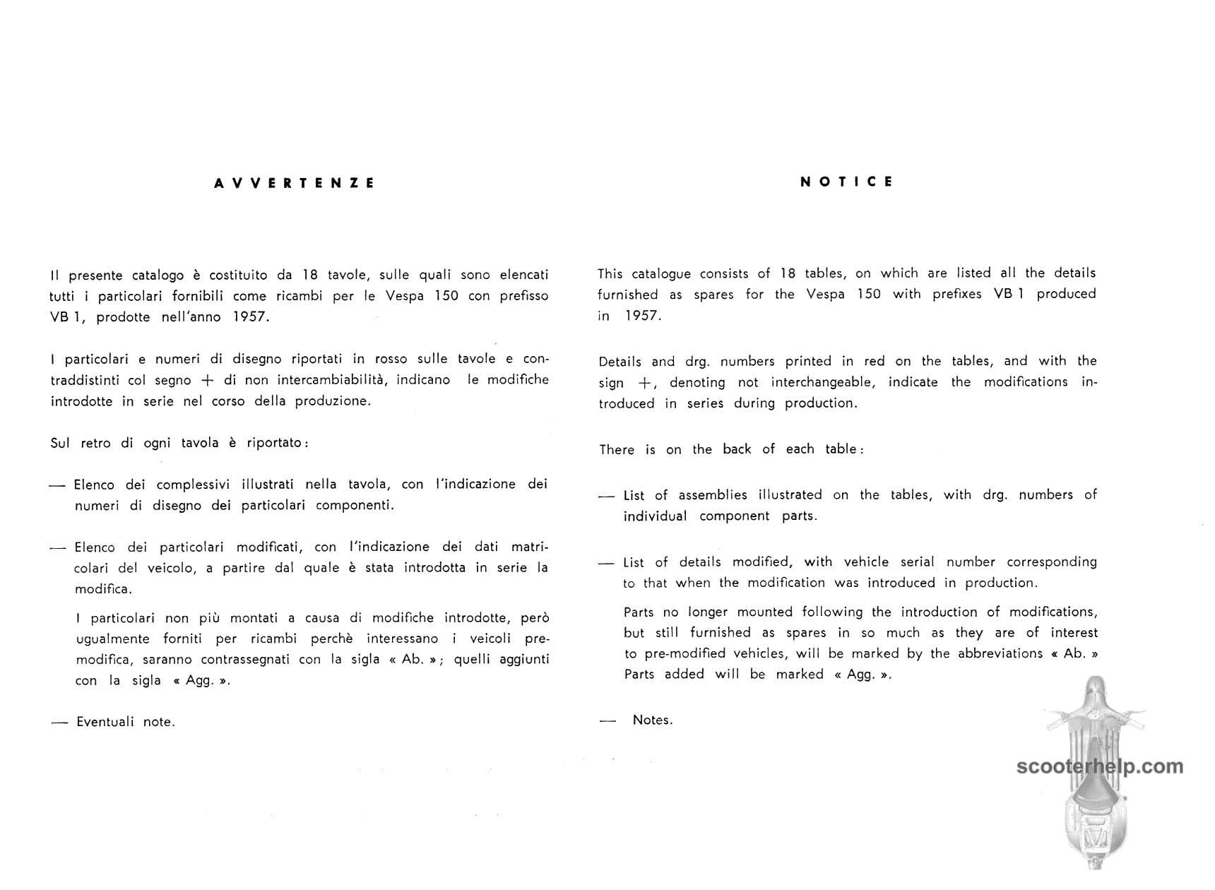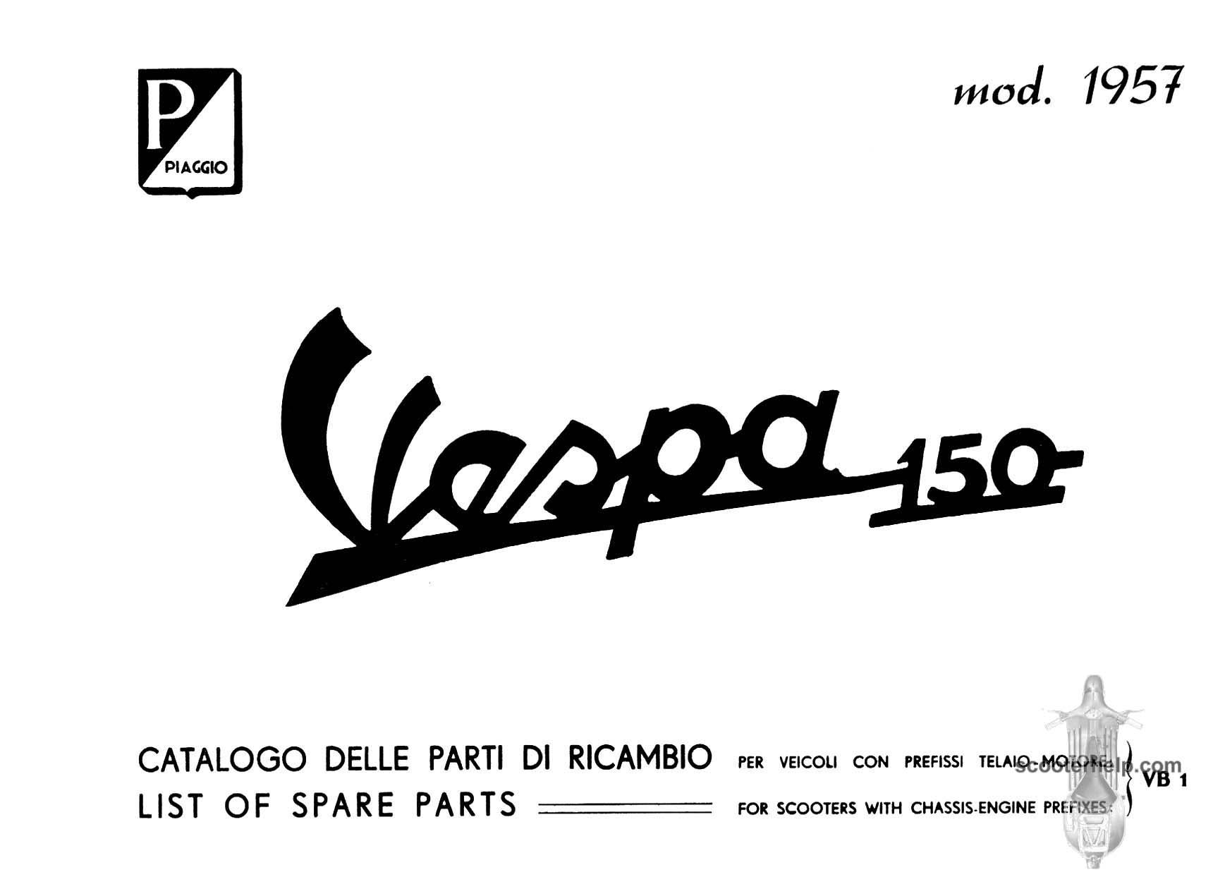 Vespa 150 (VB1T) Parts BookClick individual pages below for a 8.6"x 3" 200 DPI page. These are from the original Vespa parts book for service centers & shops - this one also includes the American supplement for bikes sold exclusively in the USA. Files sizes are about 500K for a color page and 350K for a black and white. Thanks to First Kick Scooters for the loan of the original manual. Or click here for a 6.8MB PDF file |