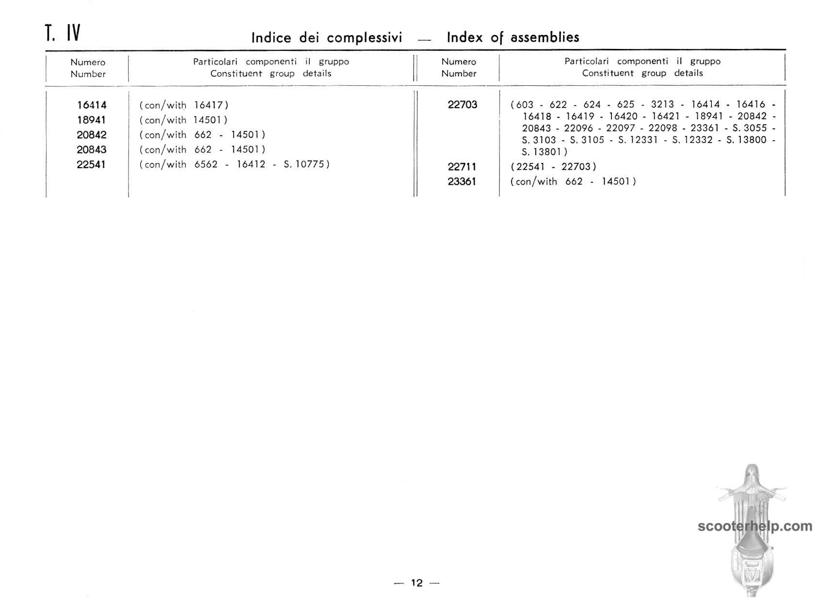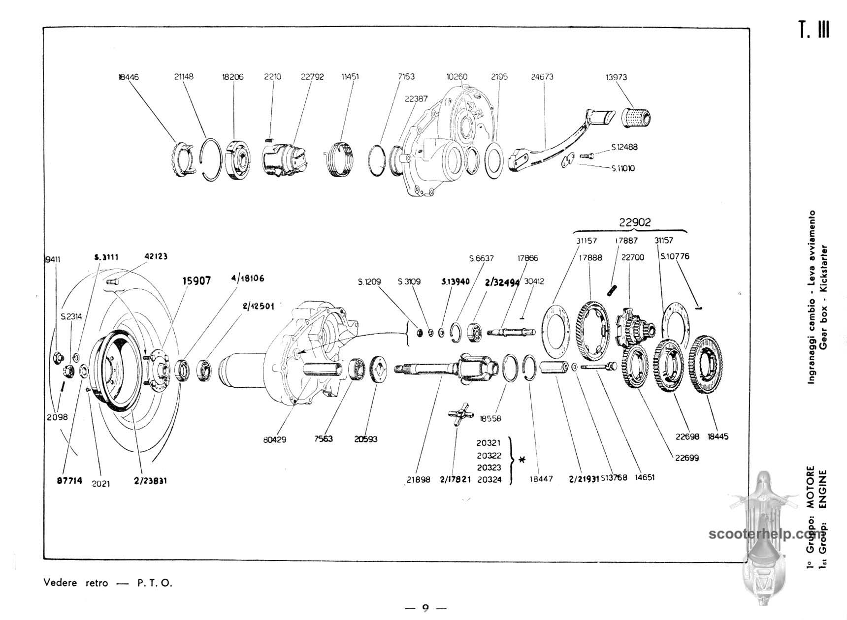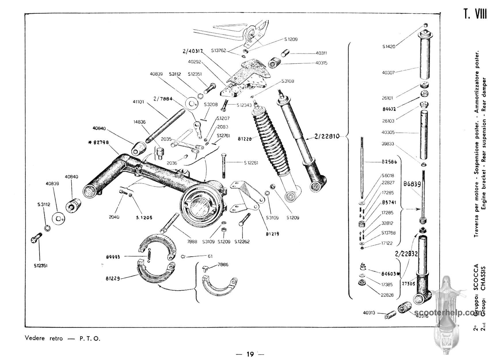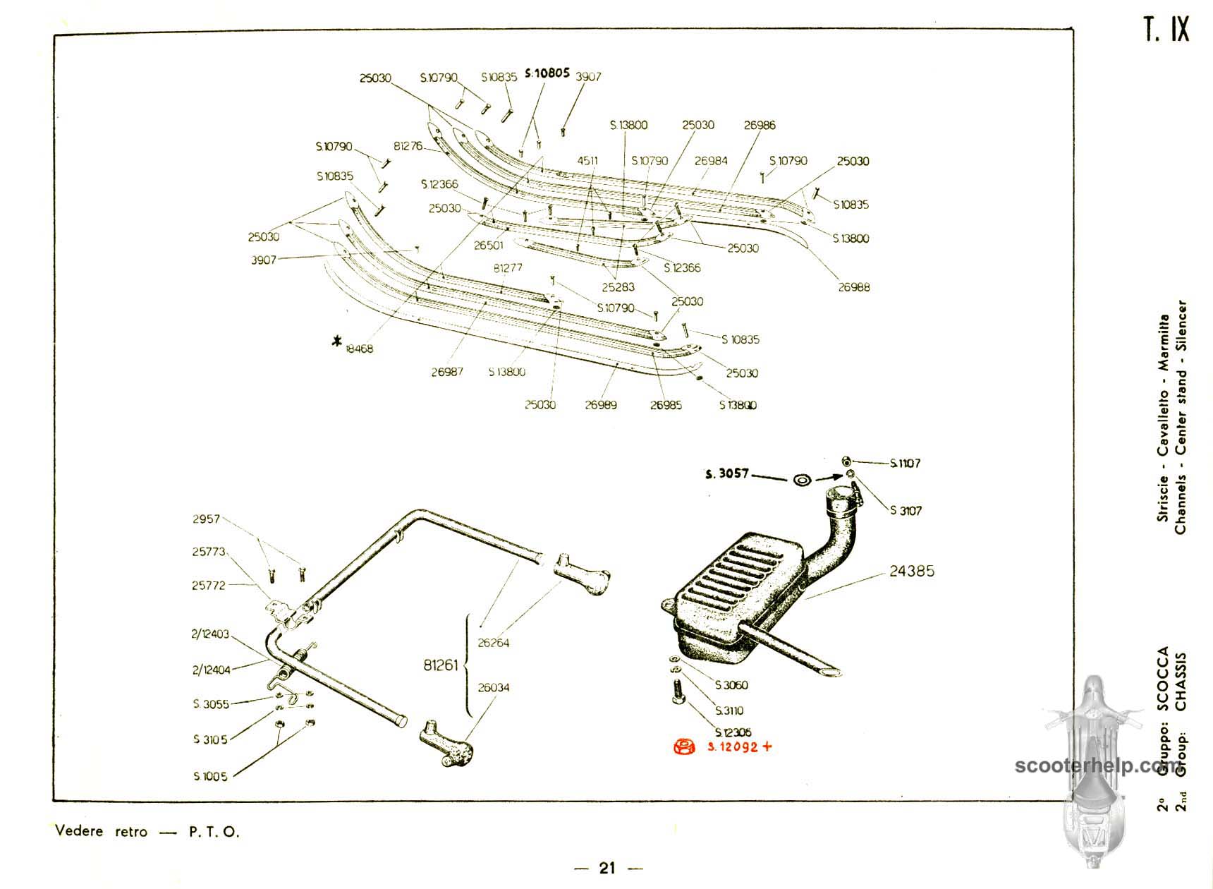 Vespa 150 (VB1T) Parts BookClick individual pages below for a 8.6"x 3" 200 DPI page. These are from the original Vespa parts book for service centers & shops - this one also includes the American supplement for bikes sold exclusively in the USA. Files sizes are about 500K for a color page and 350K for a black and white. Thanks to First Kick Scooters for the loan of the original manual. Or click here for a 6.8MB PDF file |