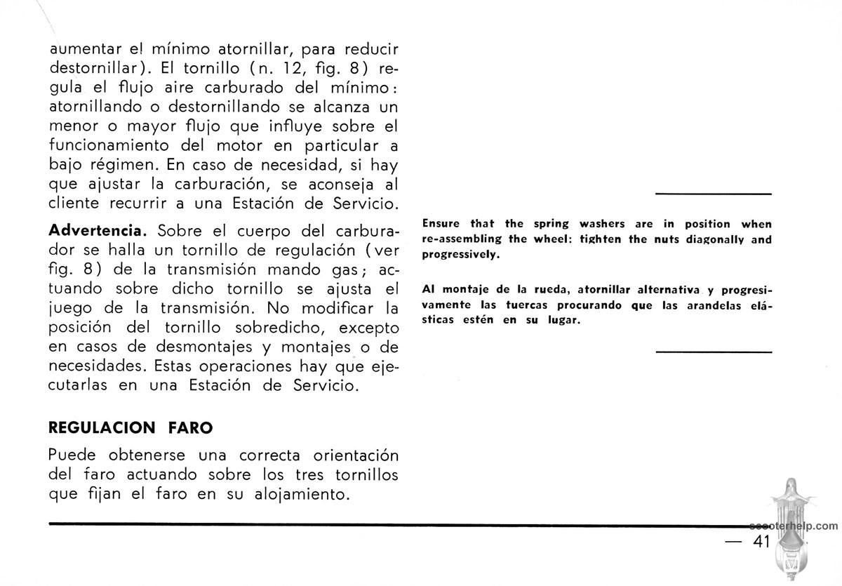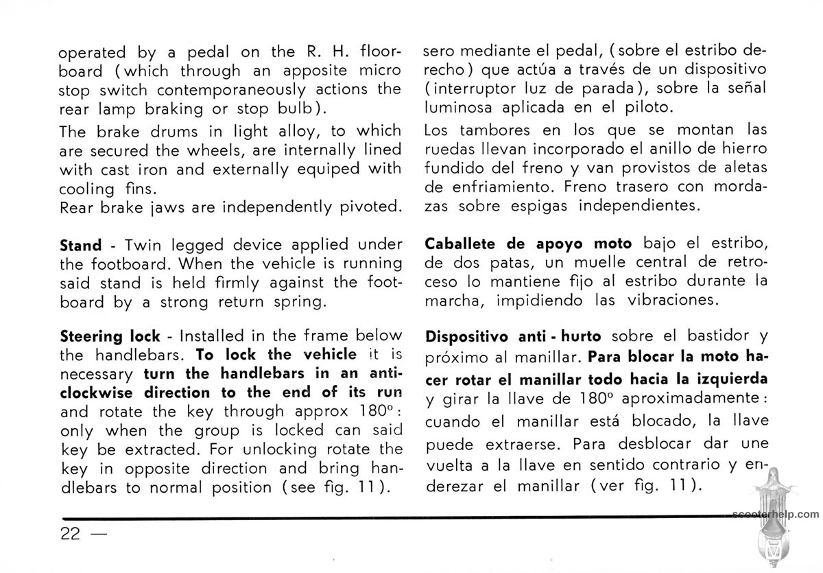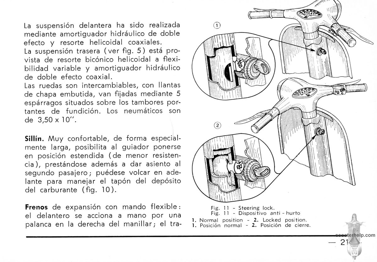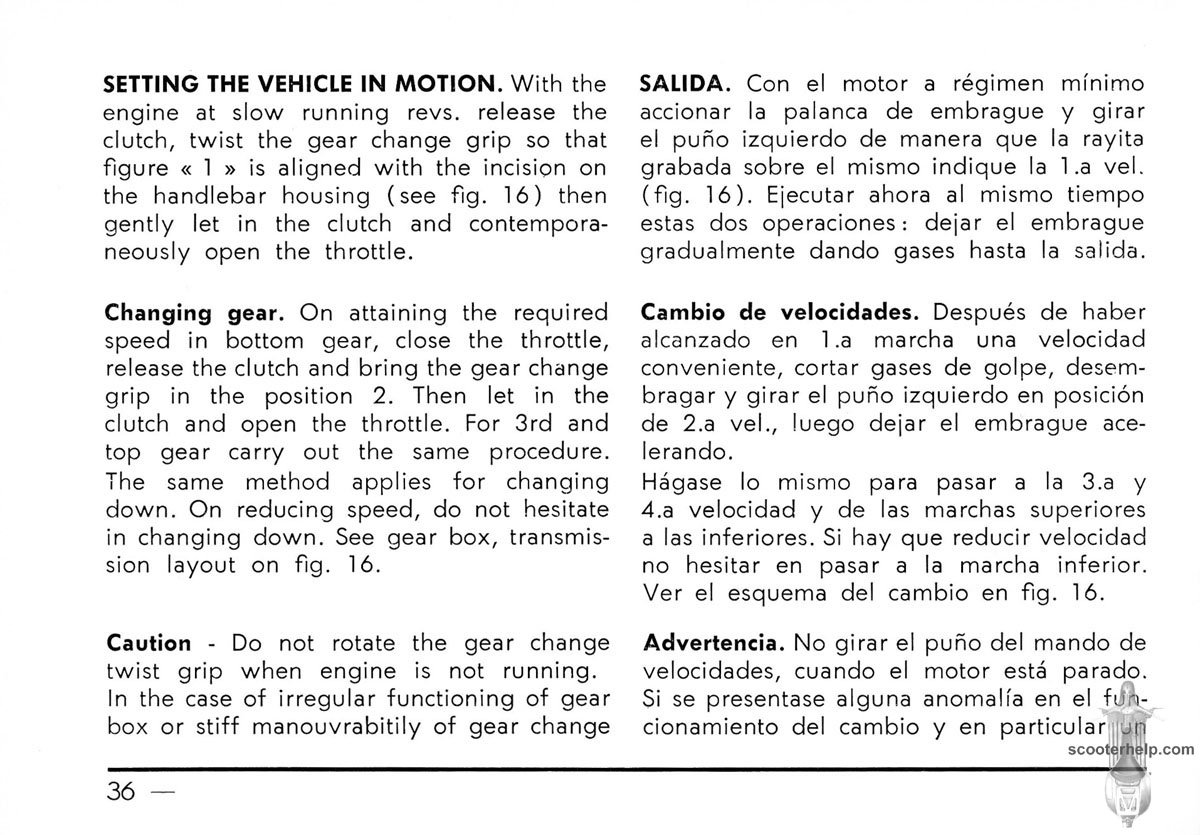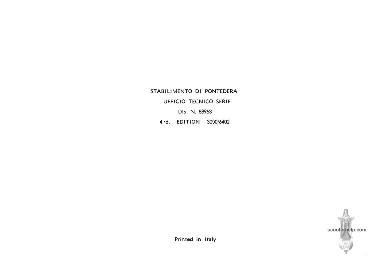 Vespa GS160 (VSB1T) Owner's ManualClick individual pages below for a 6.75"x4.75" 200 DPI page. Taken from the original owner's manual supplied with the Vespa GS160. Files sizes are about 250K for a color page and 180K for a black and white Or click here for a 9.4MB PDF file. |