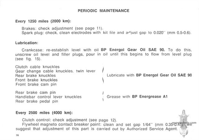 Lambretta Cento Owner's ManualClick individual pages below for a 6.5x4.5" 100 DPI page. Thanks to Chris Morris for the original scans. Files sizes are about 200K for a black and white. If you prefer a .pdf file of all the pages click here for a 2.4MB file download. |