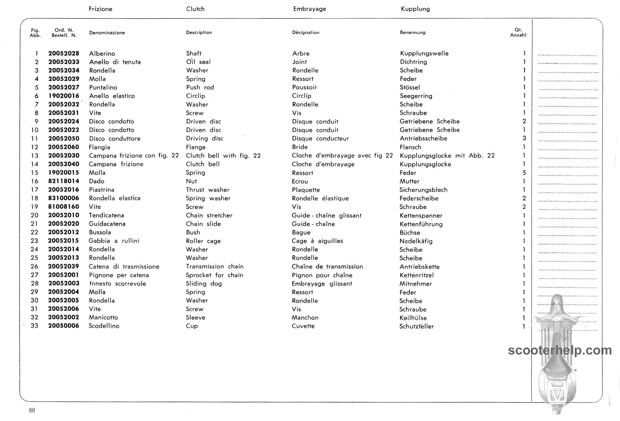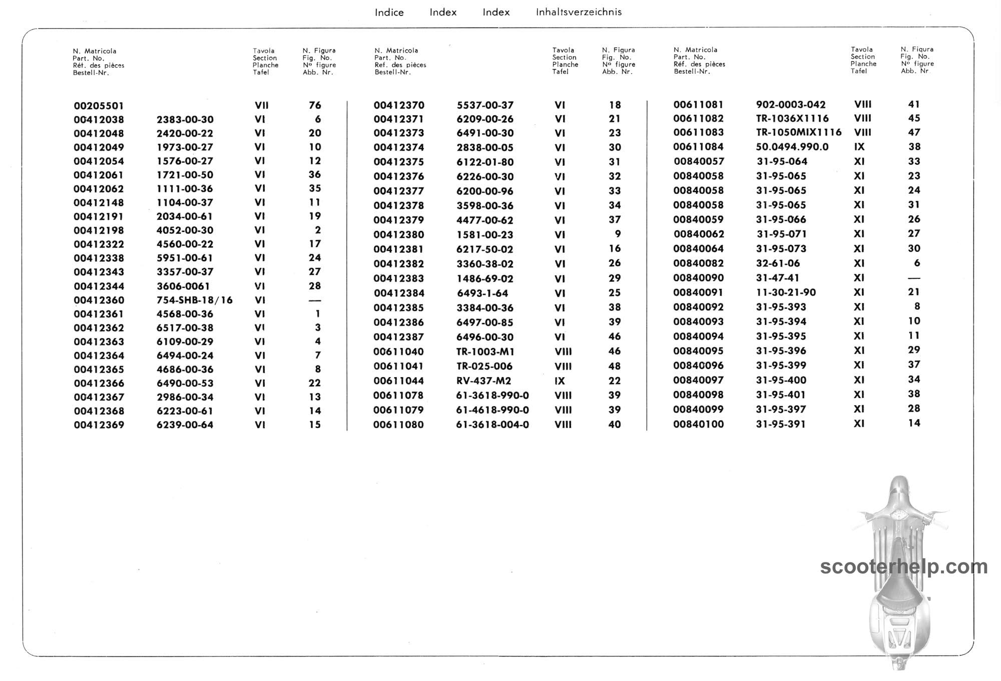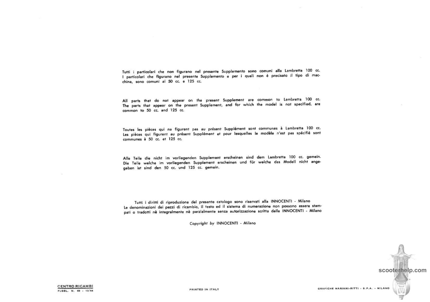 Click individual pages below for a 6.5" x 4.7" 200 DPI page. These are taken from the original parts book addition from Lambretta.
