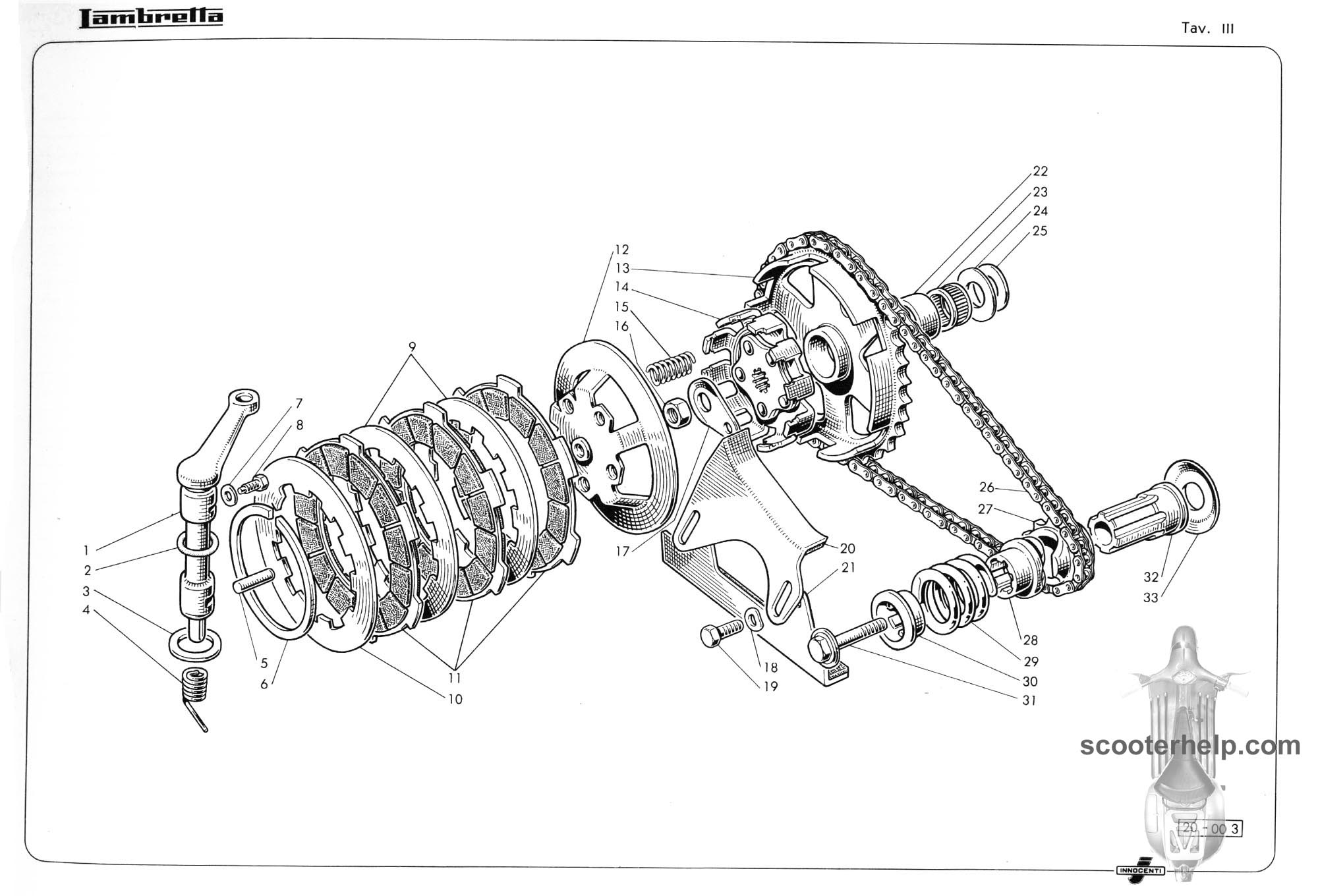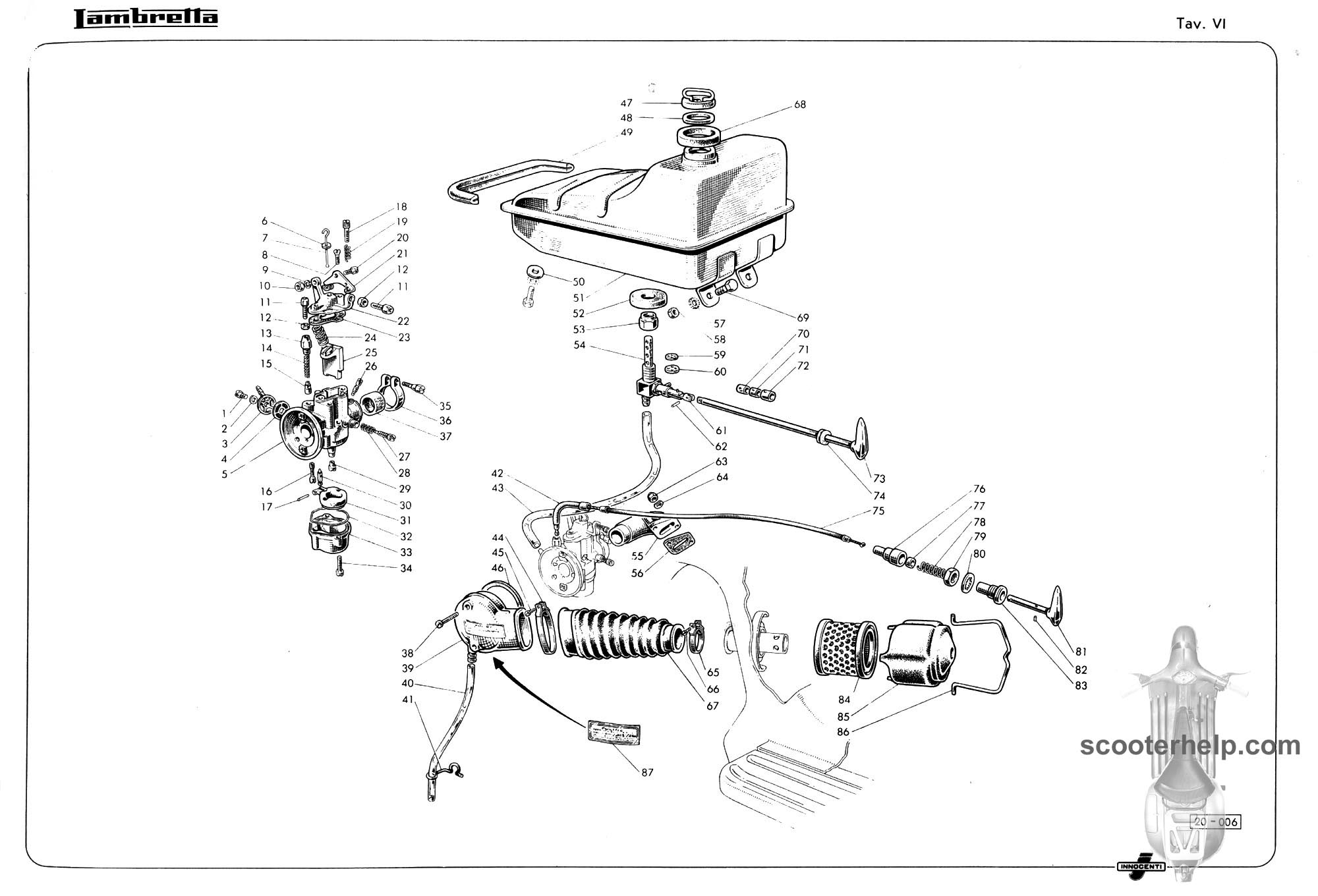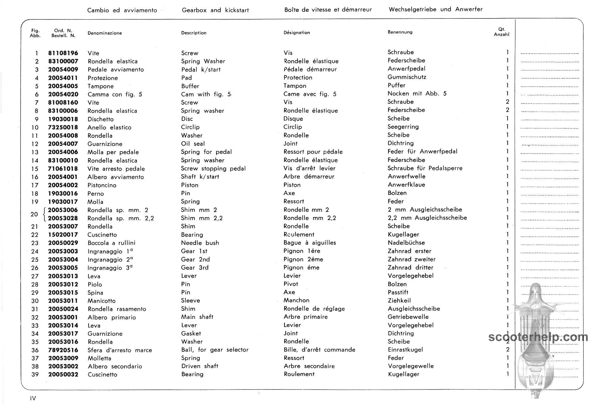 Click individual pages below for a 6.5" x 4.7" 200 DPI page. These are taken from the original parts book addition from Lambretta.