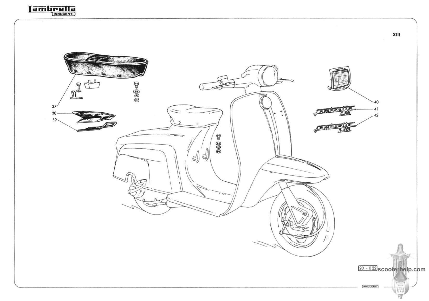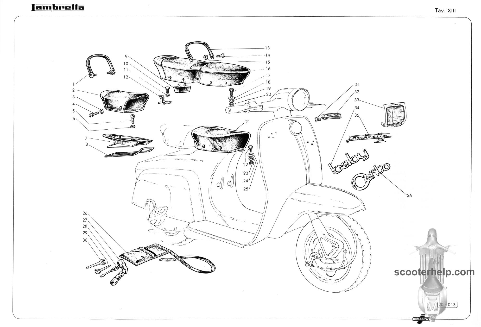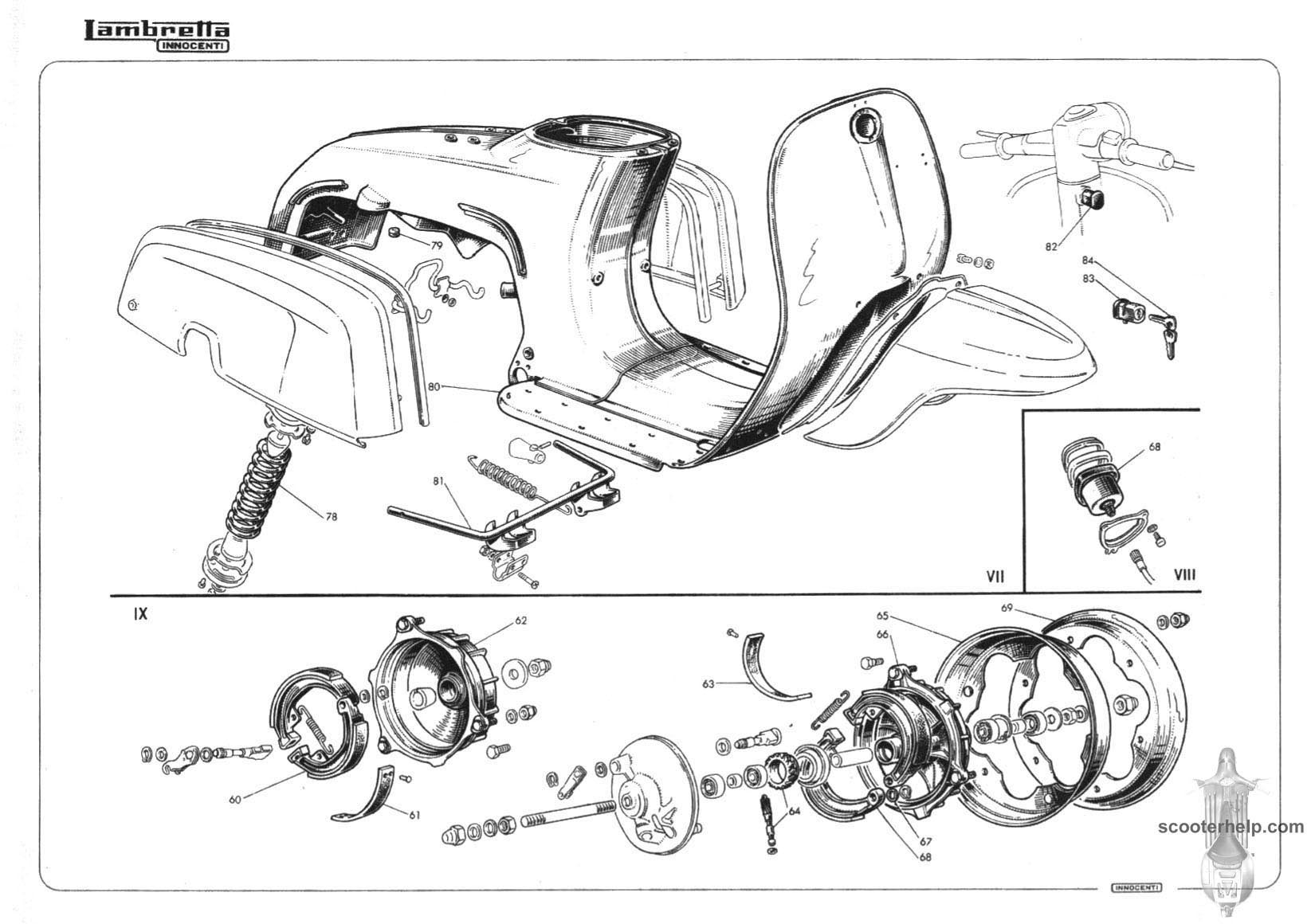 Click individual pages below for a 6.5" x 4.7" 200 DPI page. These are taken from the original parts book from Lambretta.
