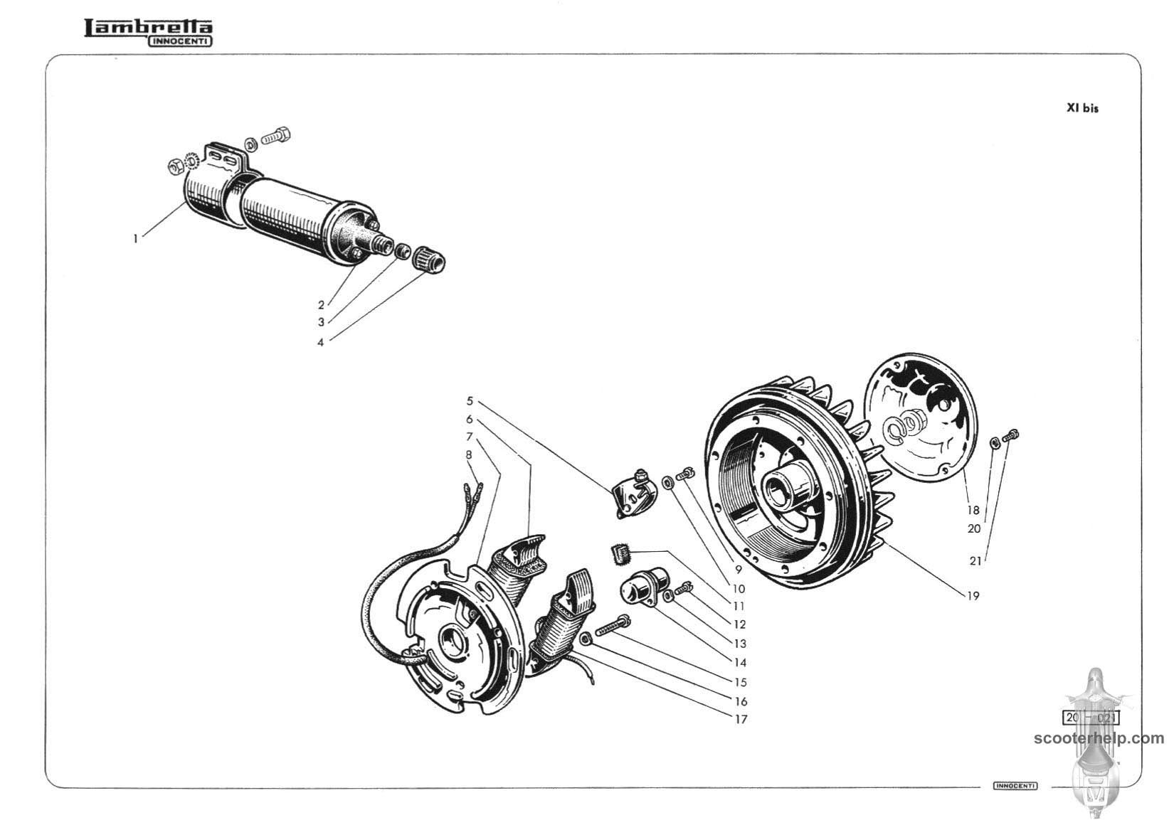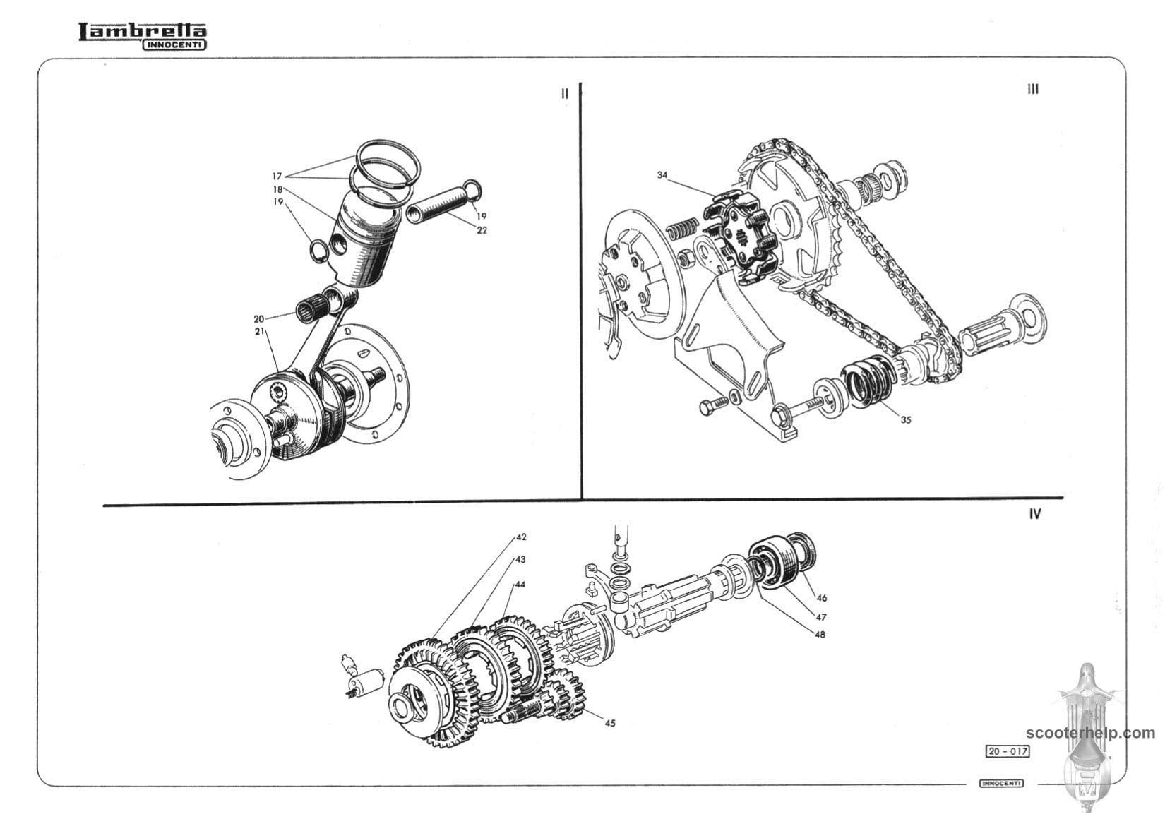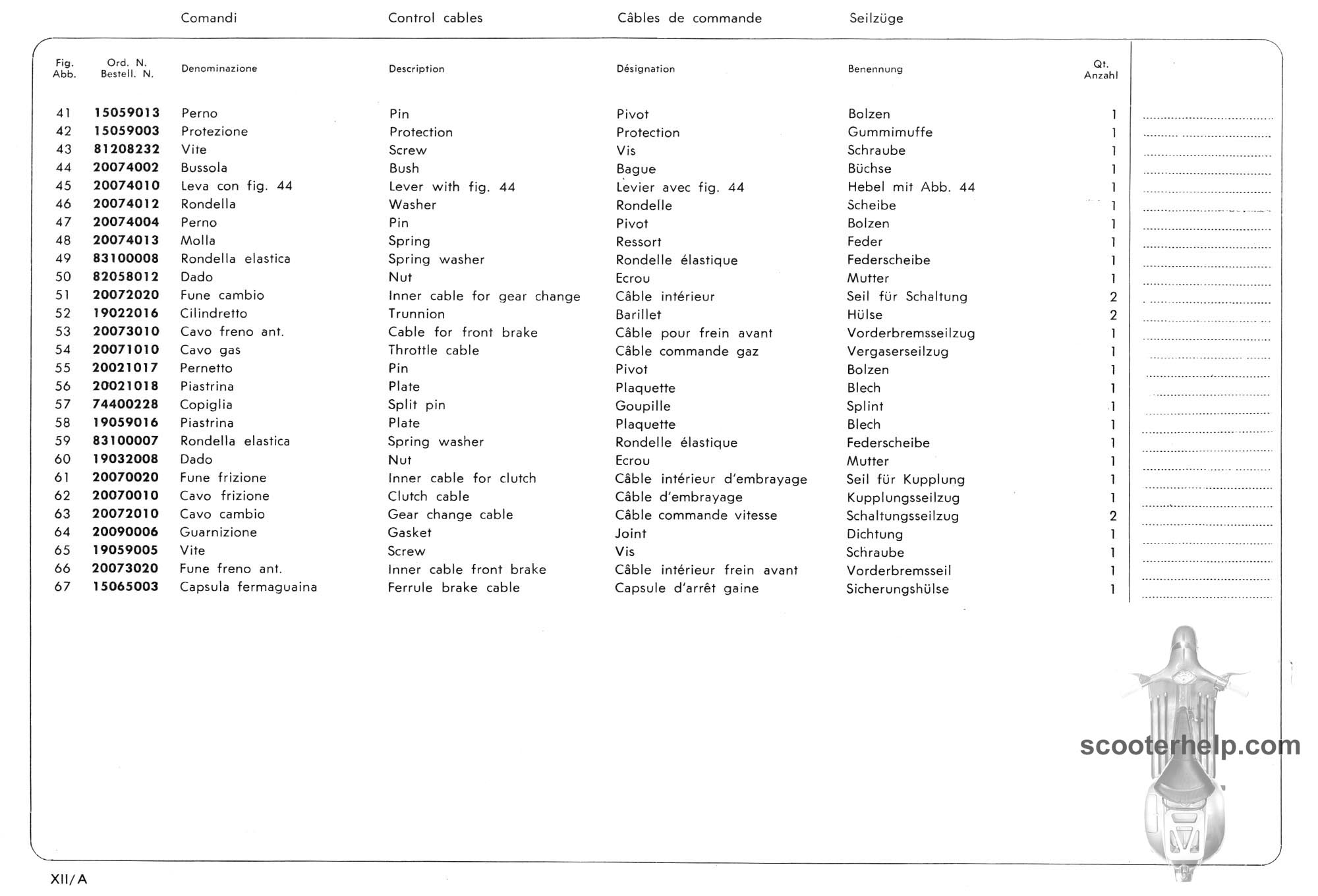 Click individual pages below for a 6.5" x 4.7" 200 DPI page. These are taken from the original parts book from Lambretta.