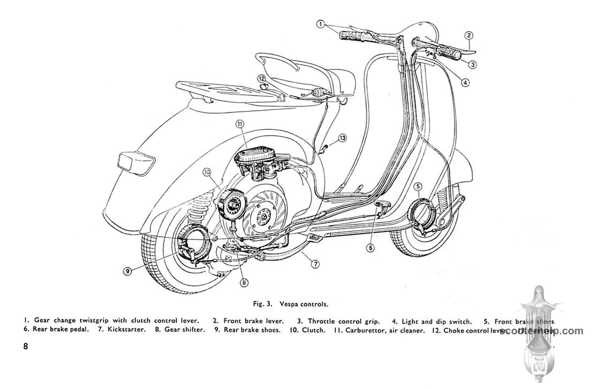 Douglas Model 152L2 Service ManualThis manual was provided to scooter shops for Vespas made under license in the UK by Douglas and covers all aspects of repair and service. Thanks to the reader who sent me the disk of scans. or click for a 15MB PDF file |