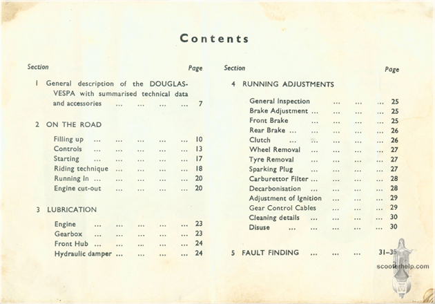 Douglas Rod ModelThis manual was sold with Vespas made under license in the UK by Douglas. Thanks to Damian Kurth for the original scans. Click individual pages for images or here for a high resolution 7.7MB PDF file. |