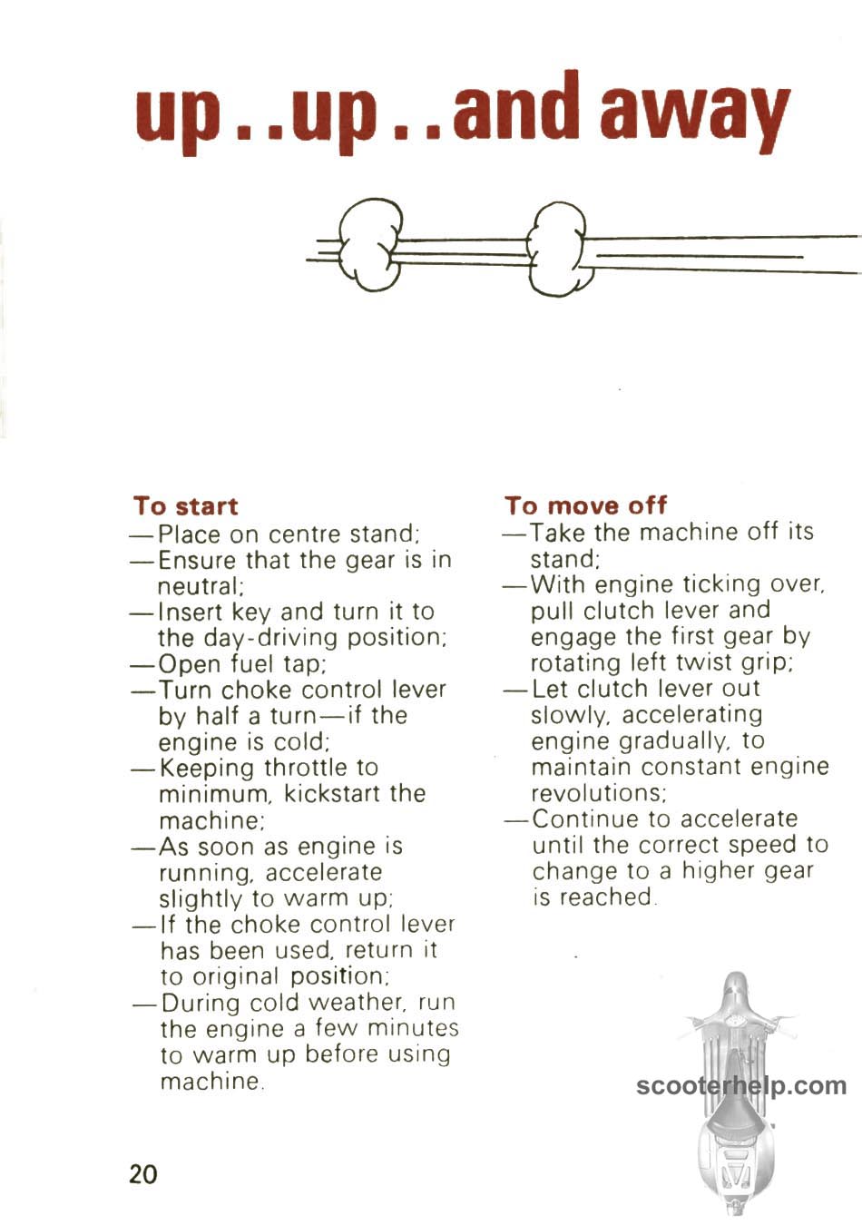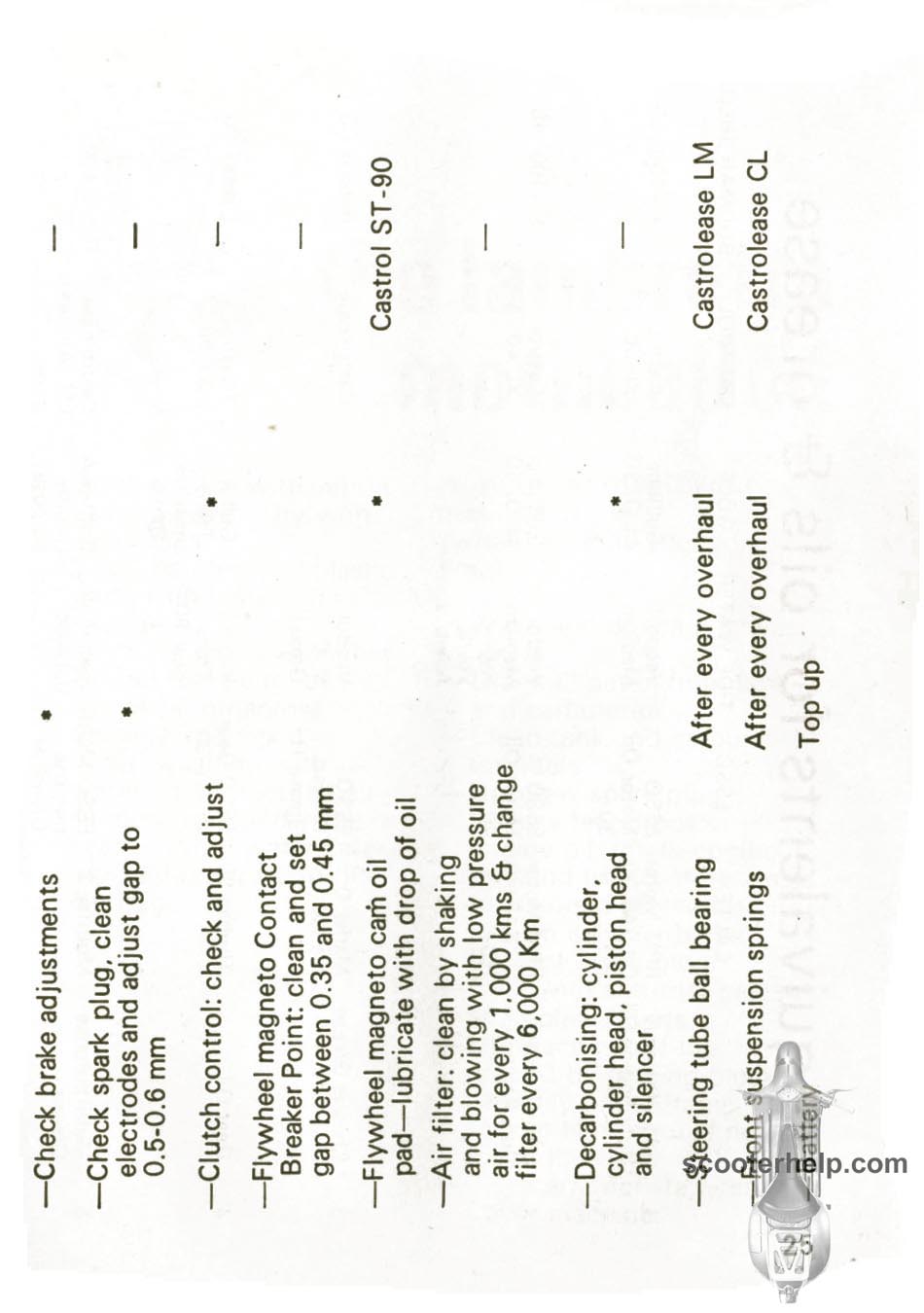 Indian SIL Lambretta DL 200 (GP200)This manual is scanned from the Indian version of the GP200. It's a pretty goofy manual with all the cartoons, but it does have some useful information. Click individual pages below for a 6.75"x4.75" 200 DPI page. Files sizes are about 100K for a color page and 180K for a black and white Click individual pages for images or here for a high resolution 4.2MB PDF file. |