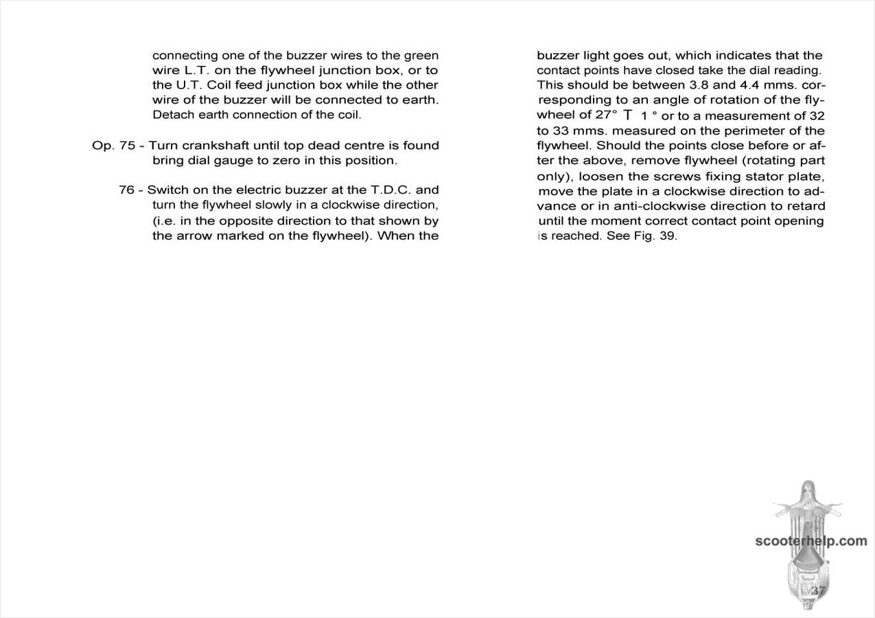 Lambretta TV175 Series 1 Factory Repair BookThese scans are taken from the original service book which was distributed to dealers in the 50s. It shows some maintenance information, a quick guide to disassembly, and various pages of tolerances and electrical diagrams. Thanks to "Fre" for all the scans. Click each thumbnail for a 150 dpi image. Click individual pages for images or here for a 7MB PDF file.