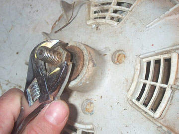 Remove the drive shroud with a small wrench or socket. The drive shroud should then pull free from the hub.