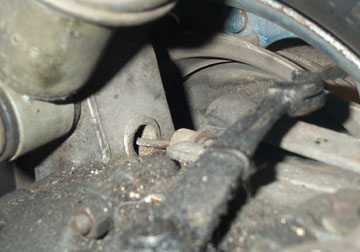 With the adjuster free, straighten the cable so it can be pushed back through the lower shock support casting...