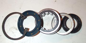 LI/SX/TV Only: Since the LI/SX/TV range has a thinner flywheel side bearing but uses the same mag side flange, a little space is necessary between the bearing and the oil seal. As far as I can tell, this can go in either way up as shown above.