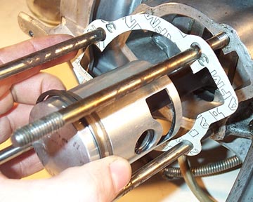 the piston. This gasket will only fit one way due to the cylinder studs.