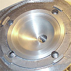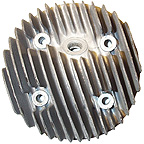 Vespa P200 Malossi head - This head has been machined to give a good clearance between the piston and the head. The little castings on the outside of the barrel stud holes are now standard on new PX200s to stop head warping when torqued down. | ||||||||||||||||||||