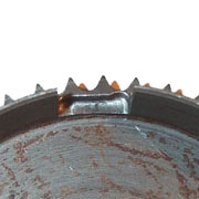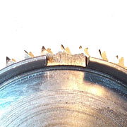 The idea behind the five plate clutch conversion is to modify the clutch bell housing to allow the plates to sit deeper in the housing and allow more plates to be used. The image on the left is a standard clutch bell housing and the one on the right is modified to let the tab of the cork plate sit lower than the perimeter of the housing. You will only need to remove enough metal to allow the cork plate past the lip. More than this can possibly weaken the outer clutch teeth.
