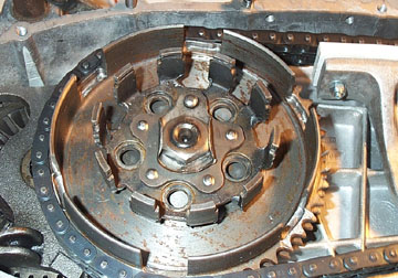 Your existing clutch plates also need to be replaced with new plates which are thinner than the 4 plate ones as shown above on the left. The new thinner clutch plates also come with new steel plates as you'll need one more compared to a four plate standard clutch.