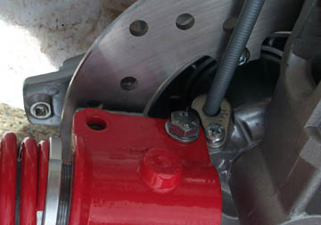 flat head screwdriver. The hydraulic line should exit the caliper as