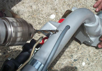 speedo cable exiting the lower hole and the master cylinder bolted in