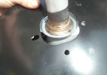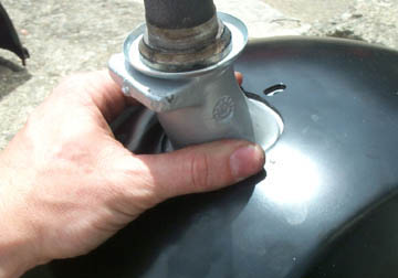 16mm P200 fork tube top. The pinch bolt cut out (red arrow), and washer